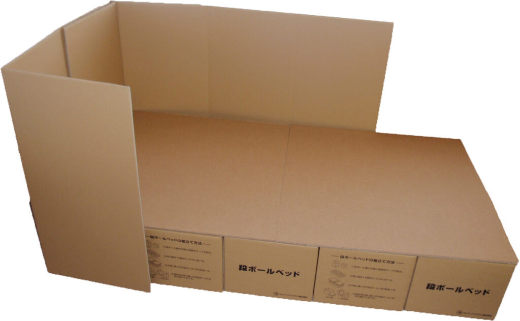 特徴としては一般ダンボールWFで十分な強度を持たす設計構造とベッド面を面で受ける部分は折れや曲げに対して強い強度を持つ強化ダンボールを組み合わせることで、強度とコスト両面での大きなメリットをご提供することができるんです。
