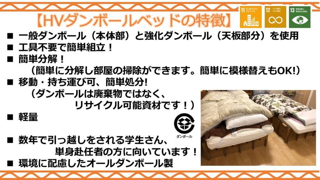 そこで今回当社で開発したのが、構造自体は一般ダンボールであるWF(ダブルフルート)を使用し、上板のみ強化ダンボールを使用するという、名付けて「HV(ハイブリッド)ダンボールベッド」です!