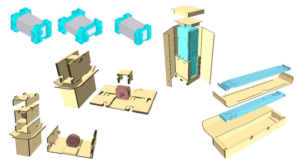 製品が組みあがる前のCADデータ段階から早い段階での包装設計開始、仮想空間上での緩衝シュミレーションを活用した緩衝性能の高精度予測による時間短縮、省資源・減量化の推進が可能です。